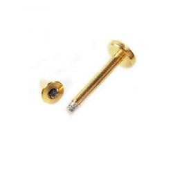 Златна къса обица за устна с конус алергичен материал, медицинска стомана.
