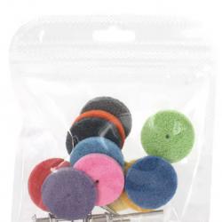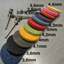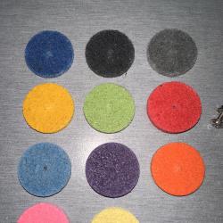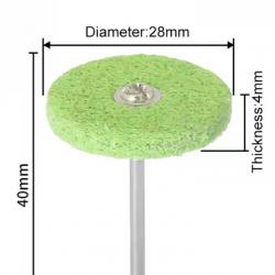 11бр. абразивни полиращи дискове от сплетени найлонови влакна с различна едрота на абразива. Порестата структура на дисковете въздейства за по-ниска температура на загряване на обработвания материал. Държачите за тях 5 на брой в комплекта са с долно пристягане на диска с гайка. По този начин се избягва развиване и излитане на диска. Подходящи за всякакъв материал (камък, метал, дърво, пластмаса) за финно шлайфане до по грубо според едротата на диска, както и за полиране с по финните. Размерите и едротите са показани на снимките