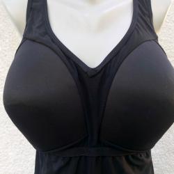 Вталяващ цял бански костюм, който оптически извайва пищните женски форми. Оформени меки чашки, които идеалнo оформят и поддържат голям бюст. (виж последната снимка, където е показан от вътрешната страна) Банския отпред е с нещо като много къса поличка Размерът на етикета е 52D Материя - 80% полиамид, 20% еластан. Регулируеми презрамки. Според производителя, най-добре ще стои на дами с приблизителни размери: За гръдна обиколка около130/135см. за талия около125/130см. за ханш около 132/138 см. Чашка D Нов. Още мои дрехи с големи размери в блога ми: https: //modamaxi. wordpress. com/