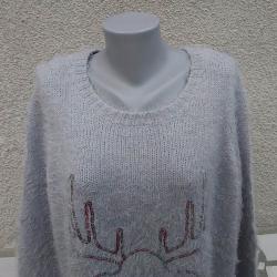 Сив пуловер с еленче от пайети на BPC Bonprix Collection.
