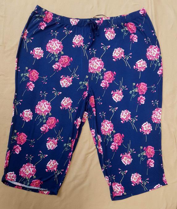 Дължината е малко под прасеца (но зависи и от височината Ви) На снимките изглежда много по – къс, защото е доста широк, а това създава погрешно впечатление. Супер удобен и лек, летен модел за много едра дама. Идеален за вашето ежедневие, защото държи хладно, не запарва, не стяга никъде. Материя – вискоза и еластан. На външен вид и допир е като фино памучно трико Модела е с ластик на талията и връзки. По етикет са размер 26+ (това е европейски размер 56, а по българският стандарт №62 Точни мерки: Дължина по външен ръб - 90/крачол-50см. / талия 2х62см. до 2х78см в разпънато положение ханш около 2х76 см. /2х85см в разпънато положение/ Дълбочина отпред-40см. /отзад -46см. / Бедро-2х44см. / до 54см. в разпънато положение/ Най - долу-2х30см. Нов. Без етикет. Тези и още много други дрехи с големи размери в блога ми: https: //modamaxi. wordpress. com/