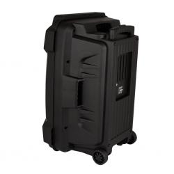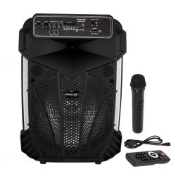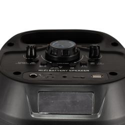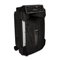 Говорители: 15" + 3"; Функции: USB/TF слотове, FM радио, Bluetooth; Цветно осветление: Да; Дръжка и колела: Да; Батерия: 7.4V/1800mA; Честотна характеристика: 20Hz-20kHz; Чувствителност: 65dB; Съпротивление: 3 ohm; Мощност: 16W; Аксесоари: USB кабел, дистанционно управление, безжичен микрофон; Цвят: Черен; Нето тегло: 8.2kg; Бруто тегло: 9.6kg; Размери: 368х310х545mm. Гаранция: 24 месеца.