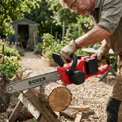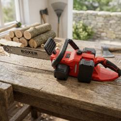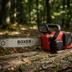 Технически характеристики на Акумулаторен верижен трион BOXER BX-3316 48V – 2 батерии + куфар, мощен и удобен Мощност: 1850 W Батерии: 2 x 48 V, 6 Ah литиево-йонни Дължина на шина: 40 см (16) Скорост на веригата: 15 м/с Обороти: 4100 об/мин Система за смазване: автоматична Тегло: само 5 кг Допълнителни предимства: автоматичен обтегач на веригата, тих ход, минимални вибрации