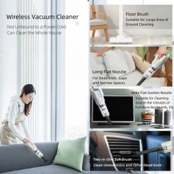 Компактна и мощна безжична ръчна прахосмукачка 2 в 1 - идеална за почистване на дома, колата и труднодостъпните места. Подходяща за хора, които ценят удобството и чистотата навсякъде.
