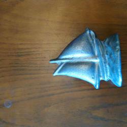Алуминиева фигура на платноходен кора. Отливка. Материал на отливката алуминий. Произход България около 1960 г. Габаритни размери 65*35*75 мм..