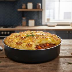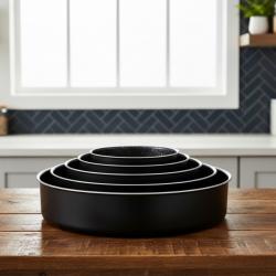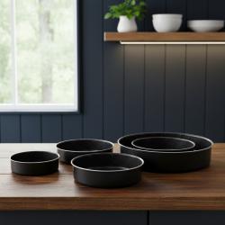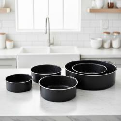 Ако ти писна печивата да загарят или да залепват, тези мраморни тави решават проблема още от първото ползване. Незалепващото покритие осигурява равномерно изпичане и лесно отделяне на храната, без излишна мазнина. Алуминиевата конструкция загрява бързо, не се деформира и прави готвенето по-лесно и предвидимо. Тавите се почистват за секунди и не съдържат PFOA. Модерният черен мраморен дизайн стои стилно във всяка кухня. Комплектът включва 5 размера: 26×7.5 см - 29лв 28×8 см - 32лв 30×8 см - 33лв 32×8 см - 34лв 34×9 см - 35лв