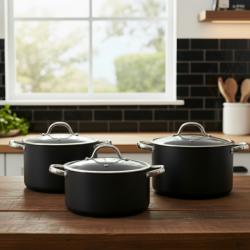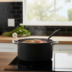 Ако храната често загаря или тенджерите се почистват трудно, тази алуминиева тенджера с мраморно покритие решава проблема веднага. Незалепващият слой позволява готвене с минимално масло и предотвратява загарянето, а почистването става лесно. Изработена е от висококачествен алуминий за равномерно нагряване и икономична работа. Предлага се в три размера – 20 см (3.3 L) - 39лв 22 см (4.3 L) - 42лв 24 см (5.3 L) - 45лв Неръждаемите дръжки са нитовани за стабилност, а стъкленият капак с отвор за пара дава контрол при готвене. Подходяща е за всички видове котлони, включително индукция, и може да се мие в съдомиялна.