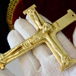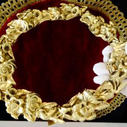 Старинна английска фруктиера, майсторска ръчна изработка от високо качествен масивен бронз със златен блясък. Ефектно декорирана с релефни цветя и ажурни кръстчета, звездички. Височина 7 см., диаметър 20 см., тегло 390 гр.