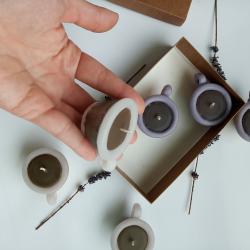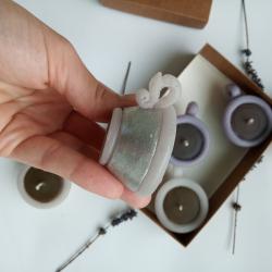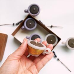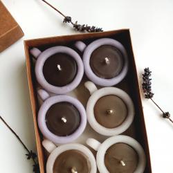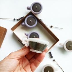 роматни чаени свещи „Чашки с кафе“ – сет от 6 броя. Чаени свещички във форма на чашки за кафе, подходящи за подаръци за гости на сватба, кръщене или просто романтична атмосфера. Изработени са от парафин и стеарин с аромати за свещ. Внесете аромата на уют и споделено утро с нашите авторски чаени свещи във формата на миниатюрни чашки с кафе. Всеки детайл от този сет е внимателно проектиран и излят в наш собствен, уникален калъп (молд), което гарантира автентичност и прецизност, които няма да откриете другаде. Сетът съдържа 6 броя чаени свещи, изработени с висококачествени материали и дискретен аромат на прясно кафе. Те са перфектният избор за декорация на дома или като оригинални подаръци за гости на тематични събития. Благодарение на собственото ни производство на молдове, приемаме поръчки за големи количества в кратки срокове, като можем да адаптираме цветовете според вашата концепция. Подарете емоция и стил с ръчно изработените произведения на Atelier ABCarving. Характеристики: Предлагат се в сет от 6 бр. размер: диаметър 6,5 см, височина 3 см тегло около 30гр цвят: бял със злато, бял със сребро, бял с антрацит аромат:, карамел, кафе Ако желаете по - голям брой, не се колебайте да се свържете с нас. https: //atelierabcarving. com/contacts/
