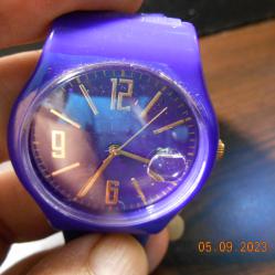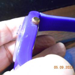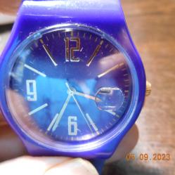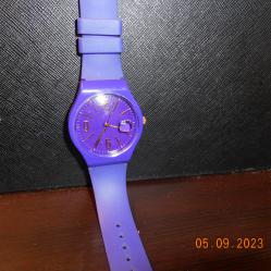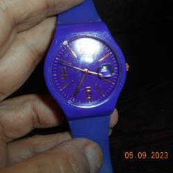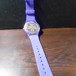 Чисто нов кварцов часовник с лупа на датата Мостра от витрина без промяна на цветовете Корпус и силиконова каишка в лилав цвят