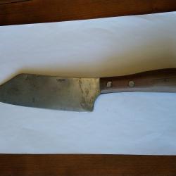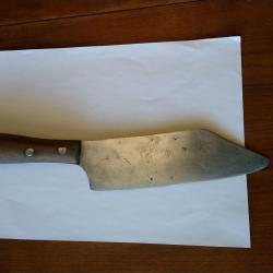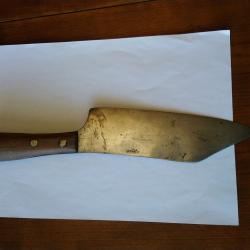 Български сатър Български сатър ръчна изработка, кован. Произход България от първата половина на двадесети век. Габаритни размери 310*60*30 мм..Дължина на острието 190 мм..Широчина на острието 55 мм..Дебелина на острието 2 мм..Материал на дръжката дърво.