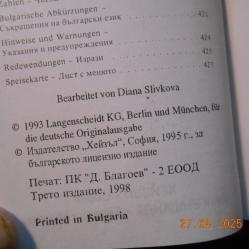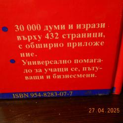 Почти нов - леко забележими следи по повърхноста Мисля че не е ползван а просто не е бил съхранен правилно. Речника е двустранен с малко изрази /описано на задната корица/ - 1998 г - 432стр-размер11/8см