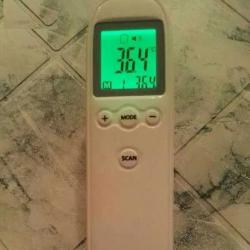 Продавам безконтактен инфраред термометър с LCD дисплей, измерва телесна температура и температурата на предмети. Има три цвята на подсветка на дисплея - зелен, жълт и червен в зависимост от измерената температура. Показва температурата в С и F. Разстояние от обекта за измерване между 3см и 5см, точност ±0.2°С. Диапазон за телесна температура между 32°С и 42.9°С. Диапазон за температура на предмети между 0°С - 100°С. Показва последните 32 измерени стойности (запазват се в паметта). Индикатор за нивото на батерията. Включени са инструкции за употреба. Работи с 2бр. батерии ААА, които не са включени в комплекта. Цвят бял.