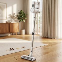 Технически характеристики на Безжична вертикална прахосмукачка с LED дисплей и мощност 16 000 Pa – лека, гъвкава и идеална за всеки дом Техническите детайли гарантират висока производителност и надеждност. В ключови точки: Максимална мощност на двигателя: 350 W; номинална: 120 W Всмукателна мощност: до 16 000 Pa; икономична: 10 000 Pa Максимален въздушен поток: 10,5 л/с Батерия: литиево-йонна 2200 mAh; време за зареждане: 4,5 часа Работно време: до 35 мин (ниско) / 15 мин (високо) 3-степенна филтрация: циклонен център, EPA 11 входен, EPA 9 изходен (миєщи се) Ниво на шум: ≤65 dB; защита от прегряване Тегло: 1,95 кг; размери: В 116 см × Ш 22,5 см × Д 24 см Захранване: вход 220–240 V ~50/60 Hz; изход 22 V / 0,5 A