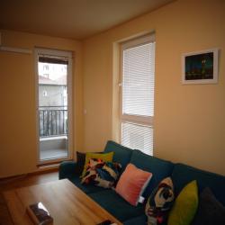 Близо до пл. Знаме на мира, удобни транспортни връзки към всички райони на София; 60м2, ЛО (газ, климатик), 3 етаж (4), в представителна нова сграда, изложение: югоизток, след ремонт, напълно обзаведен и оборудван с качествени мебели и техника. Разпределение: дневна с кухненски бокс, самостоятелна стая, баня с тоалетна, тераса към дневната. Състояние: PVC дограма, ламиниран паркет, теракота, теракота/фаянс, гипс/латекс. БОКАР ИМОТИ, тел.: 0876159291
