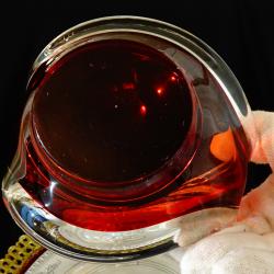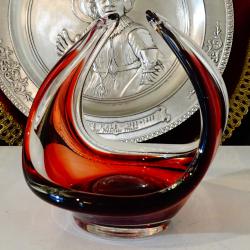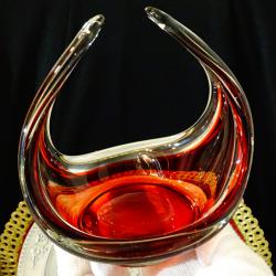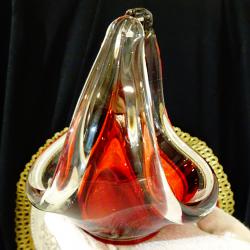 Красива дизайнерска бонбониера, кошничка, цветно стъкло, ръчно изработена от шведския майстор на стъкло Пол Кеделв, работил за шведската фабрика за стъклени изделия Flygfors от 1956 г. Височина 14 см., дължина 14 см., диаметър 13 см. Тегло 480 гр. Перфектна.