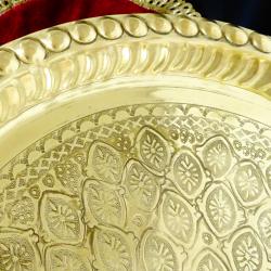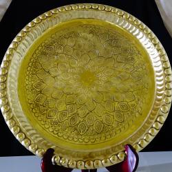 Стар поднос, плато, табла, съд за сервиране, майсторска ръчна изработка от високо качествен, масивен бронз. Декориран с богати релефни орнаменти, подноса блести като златно огледало. Диаметър 35 см., височина 2.5 см., тегло 500 гр.