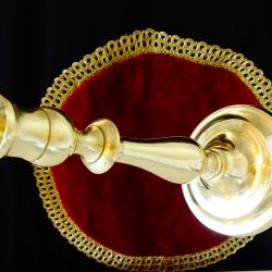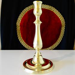 Старинен викториански свещник, майсторска ръчна изработка от масивен високо качествен бронз със златен блясък. Височина 24.5 см., диаметър на основата 12 см., тегло 490 гр.
