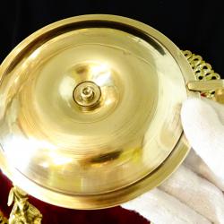 Стар свещник, преносим свещник, майсторска ръчна изработка от високо качествен масивен бронз. Декориран с прецизно изваяни релефни рози. Свещника има удобна дръжка, ръкохватка. Не е ползван, блести като златен, перфектен. Височина 7 см., диаметър 13.5 см., тегло 340 гр.