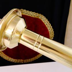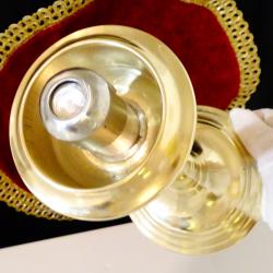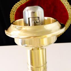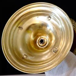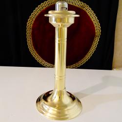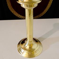 Стар свещник, майсторска ръчна изработка от високо качествен масивен бронз, като златен. Уникален ретро свещник с пружинен механизъм за свещта, който дава възможност да се контролира нейната височина и горене. Внушителен и практичен свещник в перфектно състояние. Височина 26 см., диаметър на основата 12 см., тегло 580 гр.