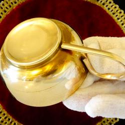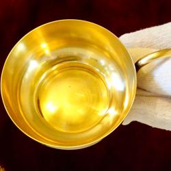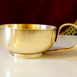 Стара чаша за кафе, чай, ръчно изработена от бронз. От вътре е позлатена. Височина 4 см., диаметър 7.5 см., тегло 60 гр. Вместимост 160 мл.