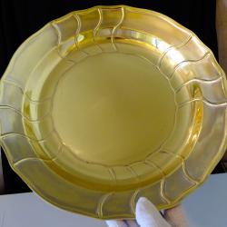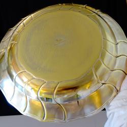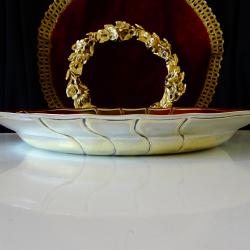 Стара фруктиера, съд за сервиране, майсторска ръчна изработка от масивен високо качествен бронз. Красиво декорирана с ефектен релеф в стил Art Deco. Уникално творение на световно известната баварска фабрика Hutschenreuther, основана през 1814 година, като производител на п о р ц е л а н! Фруктиерата е единствен представител на марката в света, вечен съд изработен не от порцелан, а от б р о н з! Изключителна находка за колекционери и любители. Диаметър 33 см., височина 5 см., тегло 700 гр.