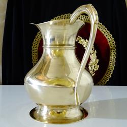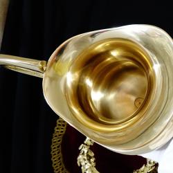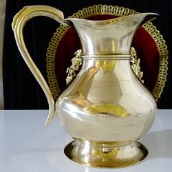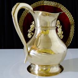 Стара бронзова кана за вино, ръчно отлята от свръх масивен бронз с високо качество и ослепителен златен блясък. Вечен съд, гордост за всеки домакин. Височина 21 см., дължина 21 см., диаметър 16 см., тегло 730 гр. Вместимост 3 литра.