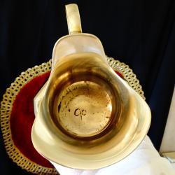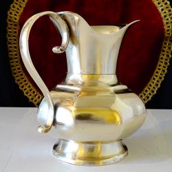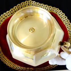 Стара кана за вино, майсторска ръчна изработка от масивен високо качествен бронз. Има сложен осемстенен профил октагон. Вечен съд, блести като златна от вън и от вътре, идеална за ползване, декорация и подарък. Височина 14 см., дължина 14 см., диаметър 12 см., тегло 420 гр. Вместимост 500 мл.