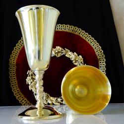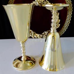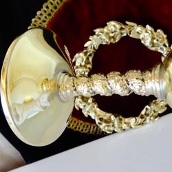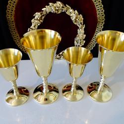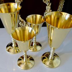 Бронзови чаши за вино 250 мл., лози, грозде, позлата.