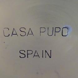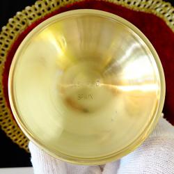 Стари испански бронзови чаши за вино, майсторска ръчна изработка от високо качестевн бронз с позлата. Блестят като златно огледало. Повдигнати на високо масивно столче, декорирано с релефни лози с грозде. Чашите са маркирани от производителя Casa Pupo Spain. Звънки, празнични, уникално красиви. Височина 18.5 см., диаметър 8.5 см., тегло на всяка 230 гр. Вместимост 250 мл. Налични 2 броя, цена 86 лв., за брой.