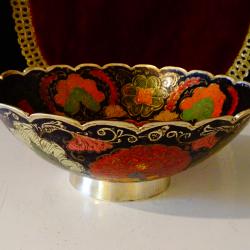 Старинно бронзово кандило, кадило, тамянник, майсторска ръчна изработка от свръх масивен бронз с много високо качество – блести като златен от вън и от вътре. Кандило шедьовър, дело на майстор с голямо сърце, вложил много любов за да създаде истинско произведение на изкуството без аналог – разкошен релеф, ефектен ажур за да искри от вътре най-красивата светлина, съвършен кръст с релефни цветя. Височина 17 см., диаметър на основата 11 см., тегло 300 гр.