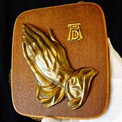 Бронзово пано Молещи се ръце, Молитва, майсторска ръчна изработка от масивен бронз и плътно естествено дърво – немски дъб. Представлява релефна репродукция на картината на Албрехт Дюрер – Молещи се ръце. Размер 17 х 15.5 х 3.5 см. Тегло 420 гр. Интересна е историята на творбата, свързана с трогателната биография на Дюрер: Роден в семейство с 18 деца, Дюрер и неговият брат мечтаели да учат изкуство в академията в Нюрнберг. Те знаели, че семейството не може да си го позволи и за това направили облог, който бил спечелен от Албрехт. Той отишъл в Нюрнберг, а брат му заминал да работи в мините за да го финансира през следващите четири години. Албрехт бил сензация в академията. Неговите рисунки и гравюри били по-добри дори от тези на някои професори. Когато се завърнал на село, семейството му устроило вечеря. След вечерята Албрехт се изправил, за да вдигне тост за обичания си брат, който се жертвал в негово име. Финалните думи от тоста били: - А сега, братко, е твой ред. Можеш да заминеш в Нюрнберг, за да изпълниш мечтата си. Аз ще се грижа за теб. Всички погледи се насочили към брата на Албрехт в очакване на отговора му. Със сълзи на очи, той повтарял: - Не...не... не... Най-накрая се изправил, избърсал сълзите си и тихо казал: - Не, братко. Не мога да замина за Нюрнберг. Прекалено късно е за мен. Виж какво причиниха четирите години работа в мините на ръцете ми. Костите на всеки пръст са счупени най-малко веднъж. Не мога да вдигна чашата с вино, какво остава да рисувам и да правя деликатни гравюри. Не, братко, прекалено късно е за мен. Вечерта преди лягане, вратата на стаята на Алберт била открехната и Албрехт зърнал брат си, коленичил за вечерната си молитва – със своите слаби, осакатени ръце, насочени към иконата, той молел Бога за успехи на Албрехт. Тази картина се запечатала в съзнанието на Албрехт Дюрер и години по-късно, той създава своята творба. Днес „Молещите се ръце” се пресъздава, като израз на братската обич и саможертва.