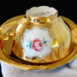 Чаша с чиния баварски порцелан, чисто злато, роза, барок.