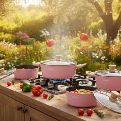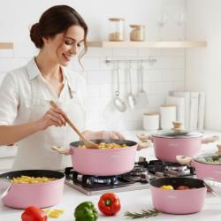 Cheffinger - Розов комплект тенджери, с мраморно покритие, здравословн