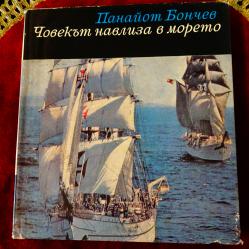 Стара книга от личната ми библиотека – Човекът навлиза в морето. Автор Панайот Бончев. Издадена през 1967 година. Твърди корици с цветна обложка и множество цветни снимки. Страници 186. В отлично състояние.