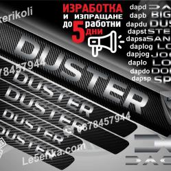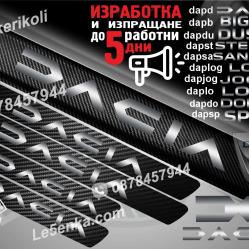 Изработват се от карбоново фолио. Прeдназначени са за автомобили които нямат декоративни прагове. Размерите са 50х5 см. за праговете на предните врати и 30х5 см. за праговете на задните врати. Изпращаме по Еконт.