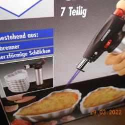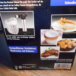 Комплекта е чисто нов - върнат в магазина в германия заради липсата на газ в комплекта Комплекта съдържа 6 порцеланови сърчица + газова горелка с 2 начина на работа Единия е с постояно натискане на газта а другия е със заключване на газта Горелката е заредена и готова за ползване Има си вградена запалка и коректор за силата на газта и коректор за силата на пламъка