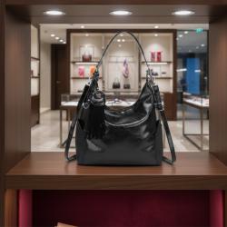 Размери: височина 28 см x ширина 32 см x дълбочина 12 см Цветове: розов, праскова, бежов, сив, зелен, син, черен Дръжки: основна удобна дръжка за рамо + регулируема дълга презрамка Джобове: странични външни джобове + вътрешни отделения за организация Декор: декоративна висулка с ресни Закопчаване: надежден цип (външно и вътрешно отделение) Подходяща за: ежедневна употреба, офис, свободно време и градски визии