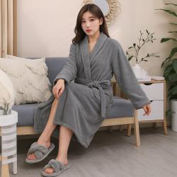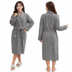 Дамски хотелски халат, класически, удобен, топъл, с връзки, мек, сив