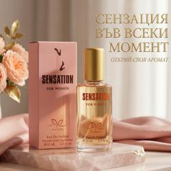 Технически характеристики на Sensation 22 мл – Свеж цветно-плодов мускусен аромат с дълготрайно излъчване Основни характеристики: Обем: 22 мл Тип: Eau De Parfum (парфюмна вода) Ароматна група: Цветно-плодов мускус Връхни нотки: свежи цитрусови акорди, плодови нюанси (круша, ябълка) Средни нотки: роза, жасмин, момина сълза Базови нотки: бял мускус, амбър, леки дървесни тонове Подходящ за: ежедневие, офис, дневни събития Ключови SEO думи: дамски парфюм, парфюмна вода, аромат за жени, модни аксесоари, стил, траен аромат