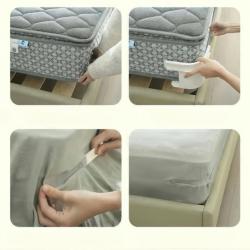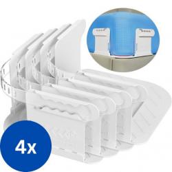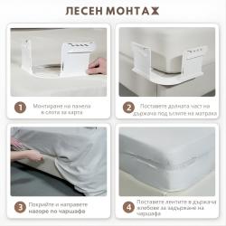 Продукт: Държачи за чаршафи, които не се плъзгат; Брой в комплект: 4 броя; Материал: Найлонови ленти и PP елементи; Цвят: Бял с прозрачни ленти; Съвместимост: всички видове и размери чаршафи; Подходящи за: единични, двойни, ъглови и ластични чаршафи; Инсталация: еднократна, без инструменти; Предназначение: фиксиране на чаршафи под матрака.