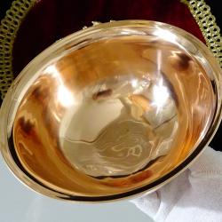 Стара датска салатиера, фруктиера, купа, съд за сервиране, изработена от масивен розов бронз – това е свръх качествен бронз с по-високо съдържание на чиста червена мед. Изключителна гладкост, ослепителен блясък, уникален цвят. Височина 7.5 см., диаметър 17.5 см., тегло 400 гр.