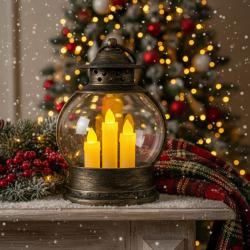 Материали: ABS + PS – устойчиви, безопасни и леки; Размери: 9 х 16 см – идеални за рафт, маса, камина или като част от коледна сцена; Светлина: Три LED свещи в топло-златист цвят; Захранване: 3 × AG13 батерии (лесна подмяна, ниска консумация); Безопасност: Без пламък, без загряване, подходящи за дом с деца; Подходящ за деца: Да – светещ, безопасен празничен декор; Гаранция: 12 месеца.