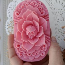 Уникален декоративен сапун ‘Роза’ върху плочка, ръчно изрязан с нож. Авторска техника без използване на молдове. Изискан дизайн в розово с нежен аромат – перфектна комбинация от традиция и изкуство от Atelier ABCarving. Ръчно гравиран с внимание към детайла, изработен от сапунена база с натурални масла и аромати, сапунът е идеален подарък за любимите ви при различни поводи. Пренесете класическата красота на розата в дома си с нашия декоративен карвинг сапун под формата на плочка. Този модел е истинско доказателство за прецизността на Atelier ABCarving, като всяко венчелистче и всеки страничен орнамент са изрязани изцяло на ръка с нож. Внимателната изработка превръща стандартната глицеринова плочка в изящен барелеф. Нежният розов цвят и деликатният аромат правят този сапун идеален избор за подарък, който излъчва романтика и внимание към детайла. Тъй като тук не сме използваме молдове в нашите карвинг дизайни, всяка плочка притежава уникални нюанси в изработката. Перфектен акцент за вашата баня или като стилен жест към любим човек, който цени авторското изкуство.