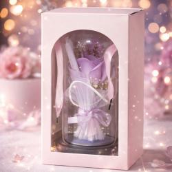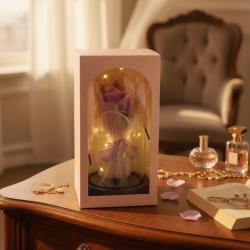Декоративна роза в стъклен купол - в подаръчна кутия