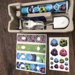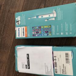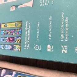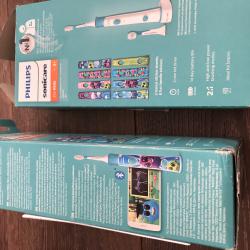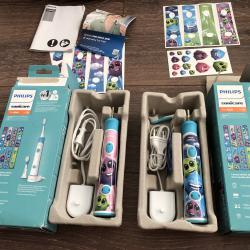 Philips Sonicare For Kids No. 1 dental profesional recomended Sonic toothbrush brand world wide mod. HX 6322 четките са два броя-без главите звукови, две степени на работа 2 минутно миене на зъбите 14 дни живот на батерията с едно зареждане едната можеби е чистонова-цена 30 евро другата е малко ползвана-цена 25 евро цена за двете заедно-45 евро вижте и другите ми обяви