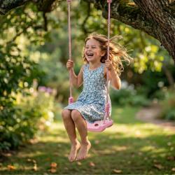 Технически характеристики на Детска градинска розова люлка – здрава, безопасна и регулируема до 75 кг Категория: Градинска люлка за деца Товароносимост: до 75 кг Материали: UV-устойчива пластмаса за седалката, здрави оплетени въжета, метални халки за захващане Устойчивост: устойчива на атмосферни влияния Размери: 44 x 17 x 8,5 см Цвят: розов Поддръжка: препоръчително миене с вода и мек препарат, избягвайте агресивни химикали