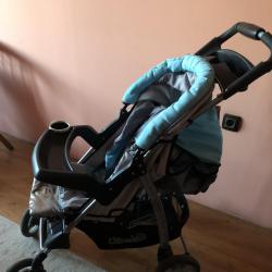 Детската количка е в отлично състояние, сгъваема, лесно преносима и лека.