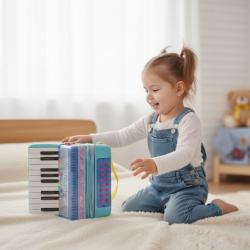 Детето ти обича музиката, но търсиш играчка, която да развива умения, а не просто да забавлява? Детският акордеон “Cheerful Song” превръща играта в музикално приключение! Той издава реалистични тонове, развива слуха, ритъма и координацията, като насърчава творческото мислене и концентрацията. Лекият и цветен дизайн с удобна дръжка и прозрачна чанта прави акордеона лесен за пренасяне и съхранение. Подходящ за деца над 3 години. Размери: 24 × 26 × 13 см. “Cheerful Song” – игра, която учи и вдъхновява бъдещи музиканти!