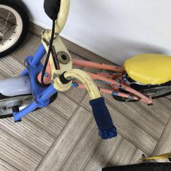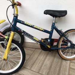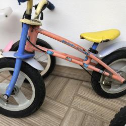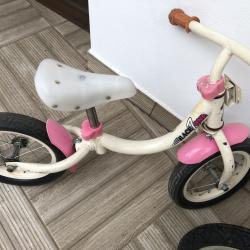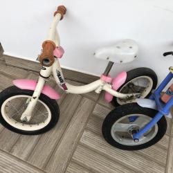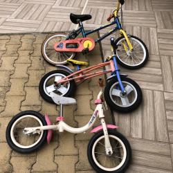 Race Zone 12 цола цвят-бяло/розово добро състояние-цена-30 лв. Brummi Bar 12 цола цвят-оранжево/син алуминиево задна ръчна спирачка добро състояние-цена-40 лв. Vivy Bikes 16 цола цвят-син/жълт спукани вътрешни гуми предна и задна ръчна спирачка за дете на 5-6 години цена-35 лв. внесени са от чужбина